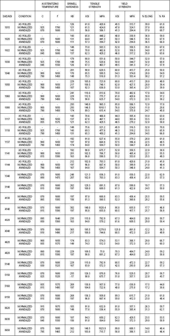 Carbon & Alloy Steel Average Physical Properties
